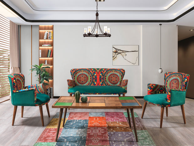Polstergarnitur(3-tlg., 1 Sofa und 2 Sessel) mit Stoff, 4-Sitzer, Hermes Mehrfarben